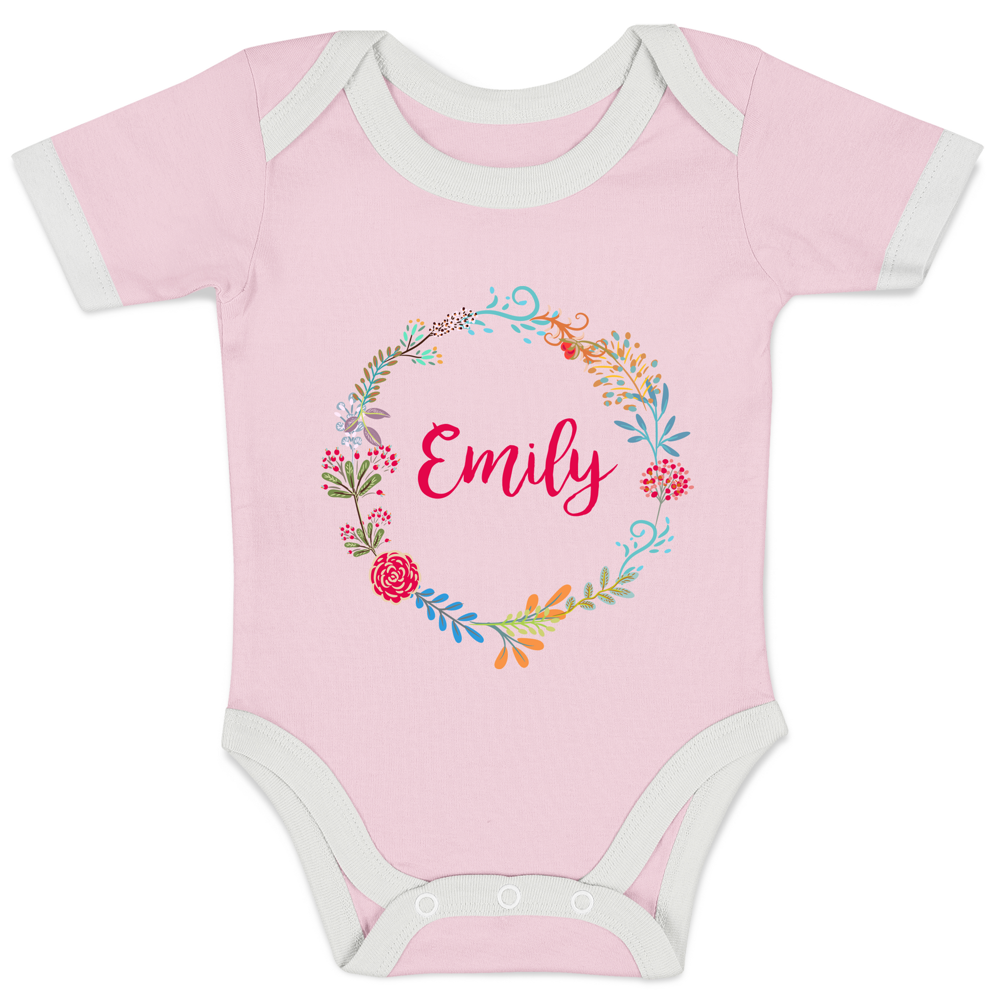 Personalized Organic Baby Bodysuit - Floral Round (Pink / Short Sleeve)