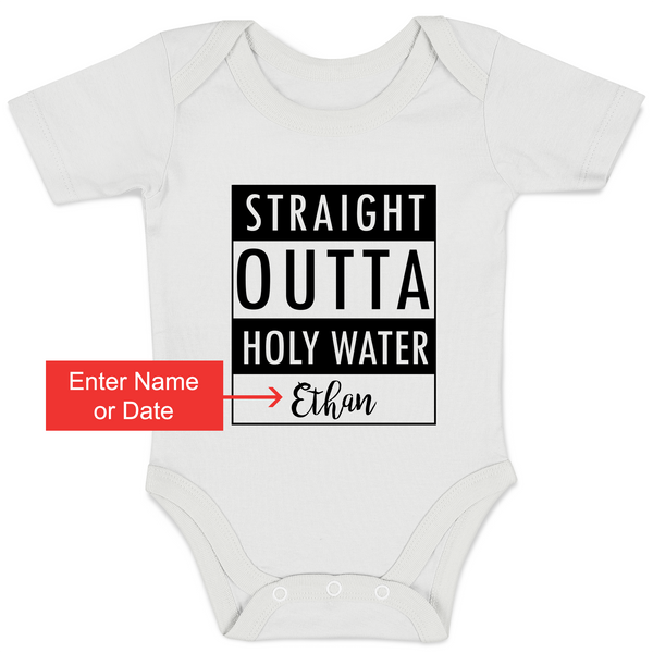 [Personalized] Endanzoo Organic Baby Bodysuit - Straight Outta Holy Water Baptism / Christening Day (White)