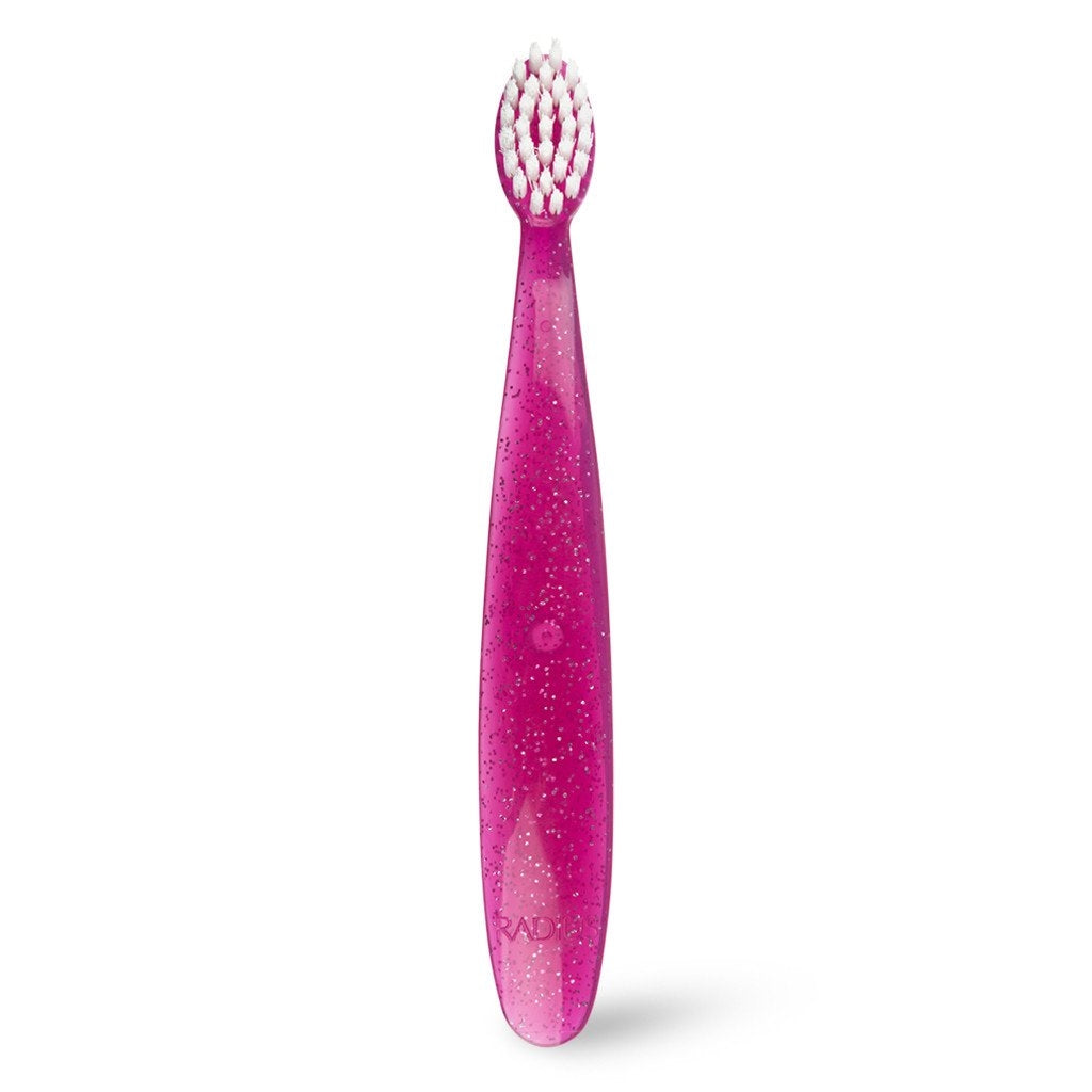 The RADIUS Totz Toothbrush is extra soft and is for children ages 18 months and up. Completely BPA free with 8,000 soft, premium RADIUS bristles. FDA approved.