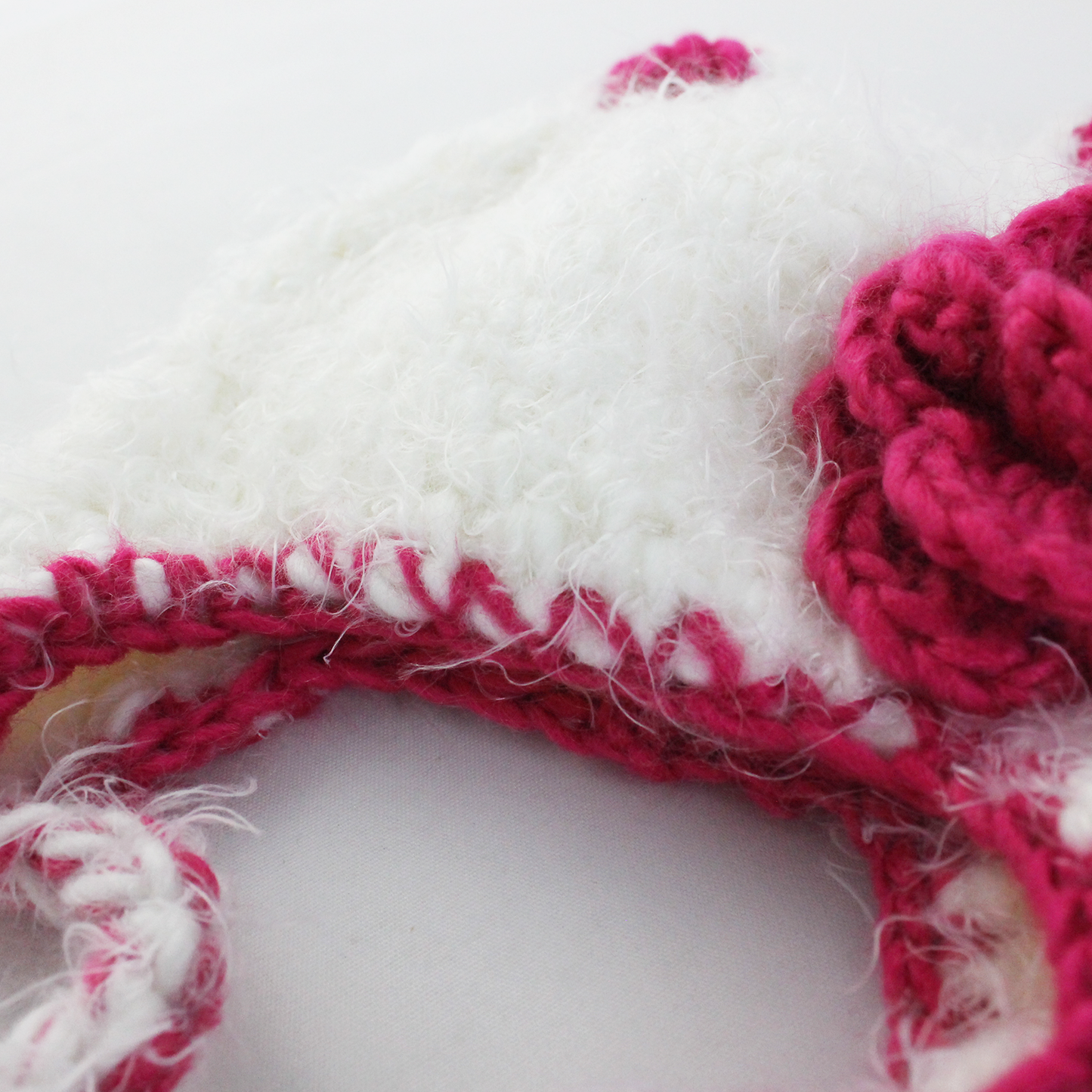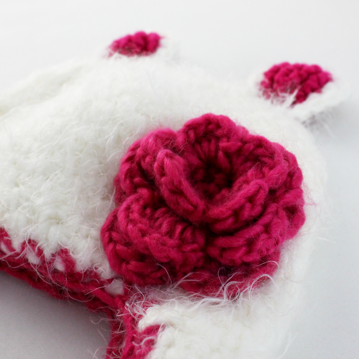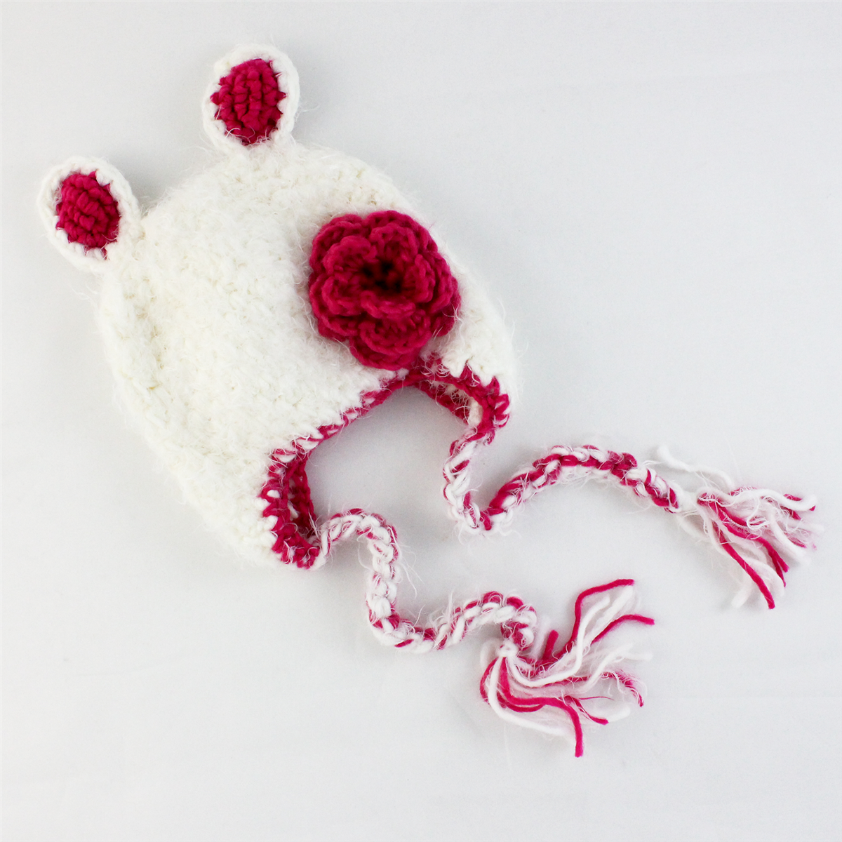 Long braided tassels and a layered soft pink flower make this hat, one that she will truly love!