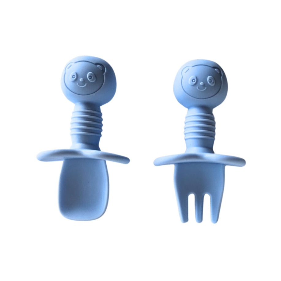 Tiny Teethers Mini Fork + Spoon Silicone Utensil Set - Pale Blue