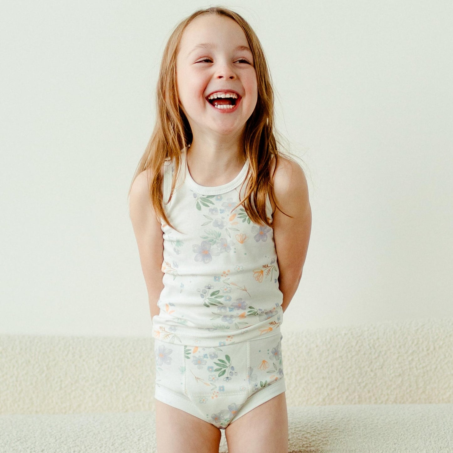 Your little one is growing up! This floral cotton underwear for growing toddlers is perfect for potty training and easy to pull up. Our new collection of washable potty training pants featuring our floral print will strengthen your toddler's confidence while transitioning from diapers to the potty.