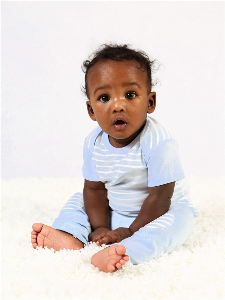 Our basic short sleeve t-shirt is great for layering and essential for every newborn and baby. Its functional lap shoulder design allows for easy changing and all day comfort. Comes in a pale pink color to perfectly coordinate with our other pale pink striped essentials.