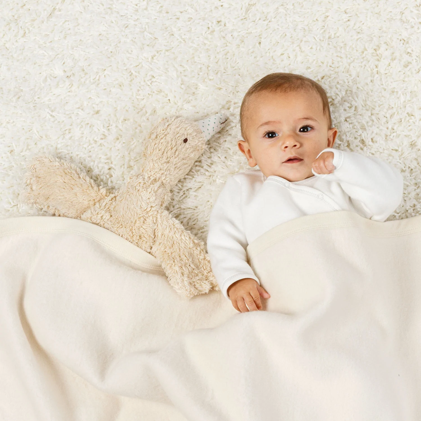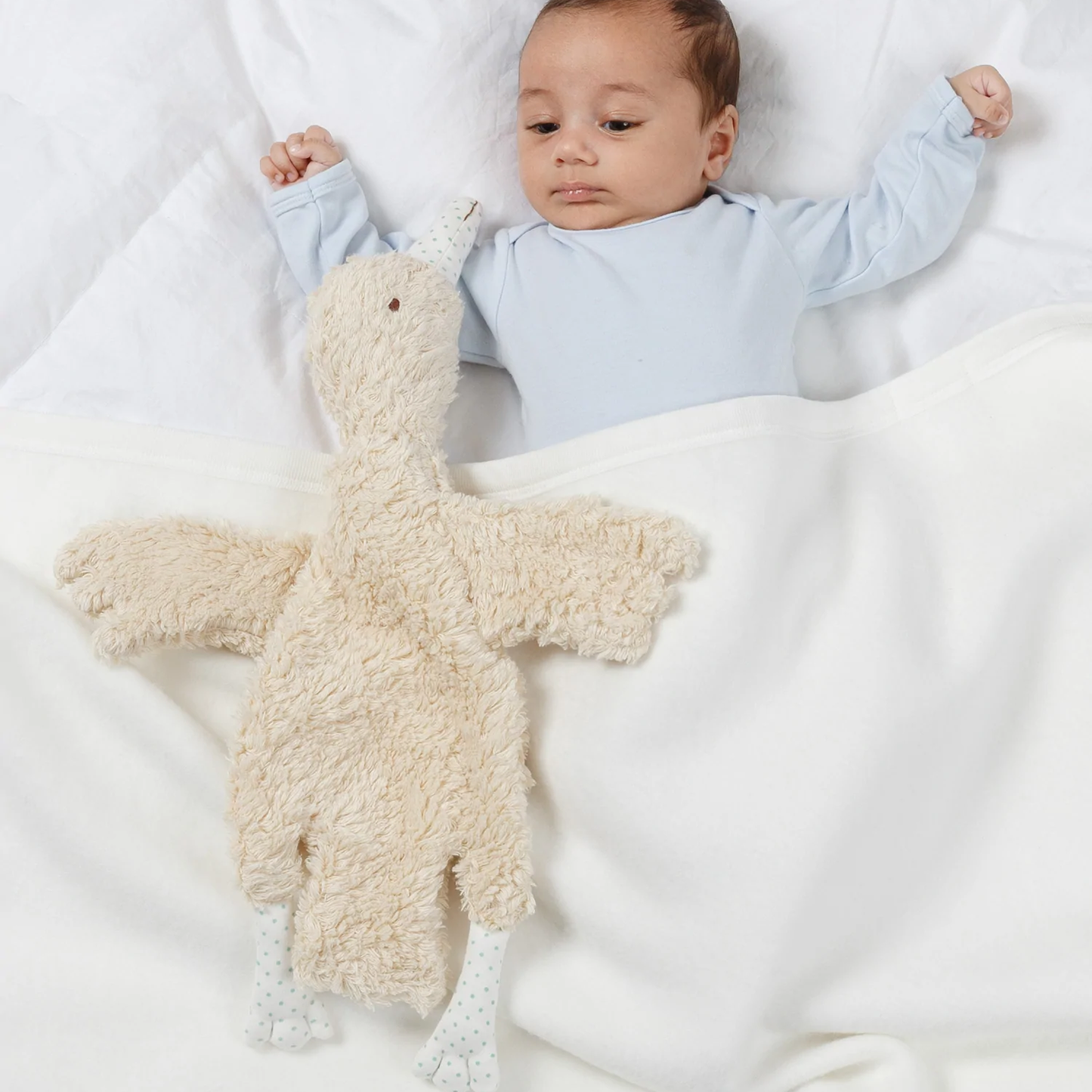 Made for cuddling, our flat sherpa Abigail Goose toy is the perfect friend for your toddler, featuring a "flat" body that is floppy, fun and easy for little hands to hold. The stuffed hands and feet also make it a great organic cotton teething toy for your baby. Lovingly made and stuffed with 100% certified organic cotton, our environmentally-friendly stuffed toy goose is pure from the inside out.