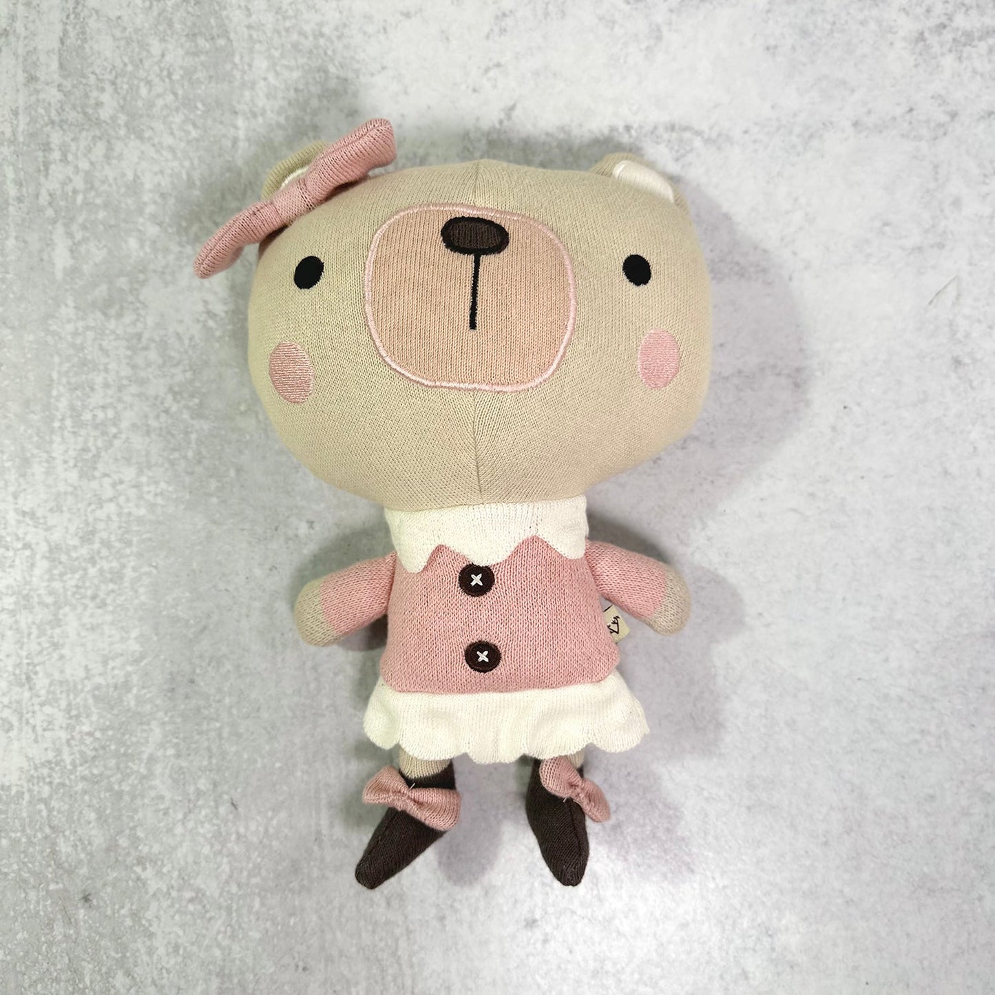 Viverano Organic Cotton Fine Knit Stuffed Animal Toy - Frankie Bear (Pink)