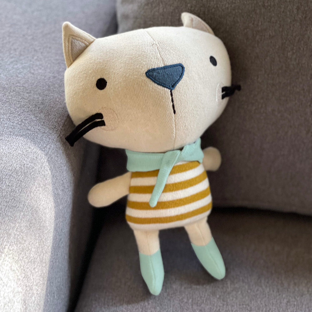 Viverano Organic Cotton Fine Knit Stuffed Animal Toy - Remi Cat (Natural)