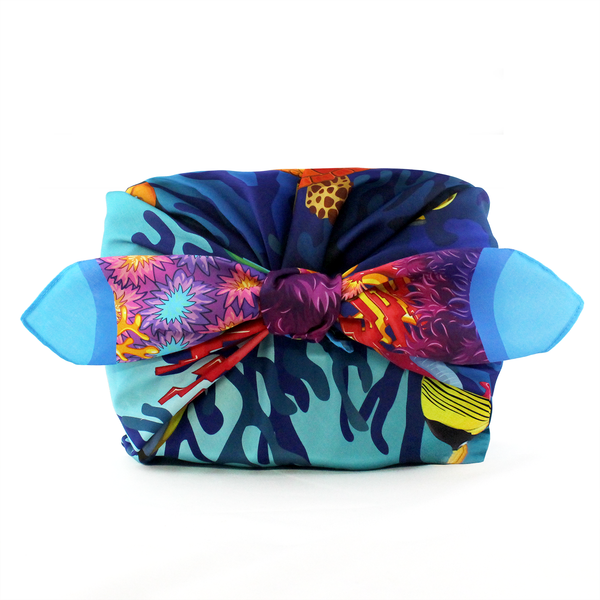 Made with Cotton. The arts on the cloth are designed by local artists. This reusable cloth wrapping will eliminate the waste of gift wrappings. - Personalized Endanzoo Organic Bodysuit - Aqua