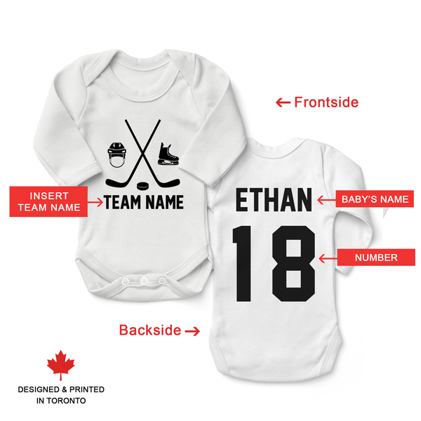 Personalized with Baby's name and number (backside) and Team name (frontside). This finest Baby bodysuit is made from soft and premium organic cotton with luxurious feel. Azo-free dyes and eco-friendly water-based inks. - Endanzoo Organic Long Sleeve Bodysuit - Aqua