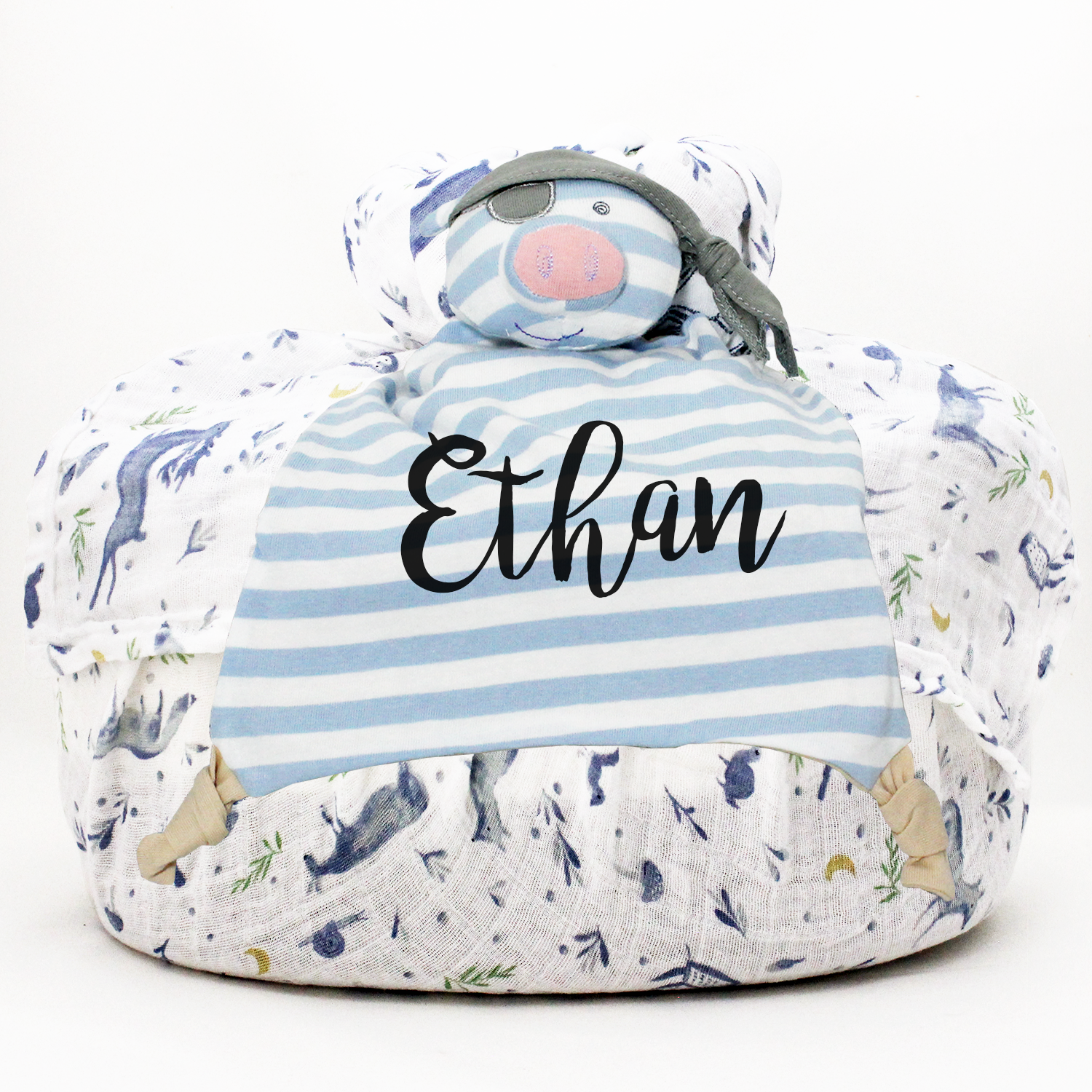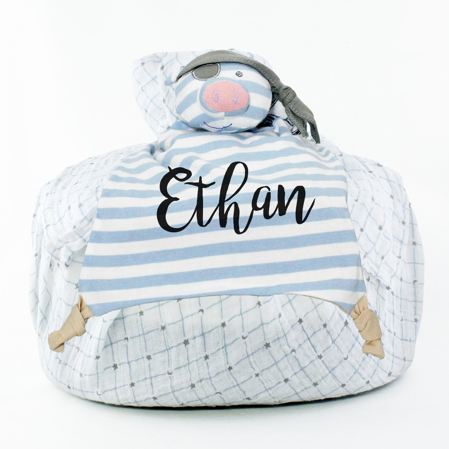 Personalized with Baby's Name. This finest Baby Bodysuit is made with soft and premium organic cotton with luxurious feel. Azo-free dyes and eco-friendly water-based inks. - Personalized Organic Farm Buddies Cotton Baby Blankie (Pirate Pig)