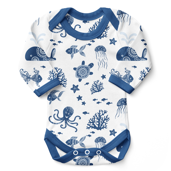 Designed in Canada, this organic romper from Endanzoo is made with great attention to details such as zip-guard, flat-seam stitches, cuff at wrist and ankle, to name a few. It is also made with soft and premium GOTS Certified organic cotton with luxurious feel. - Endanzoo Organic Long Sleeve Bodysuit - Deep Sea