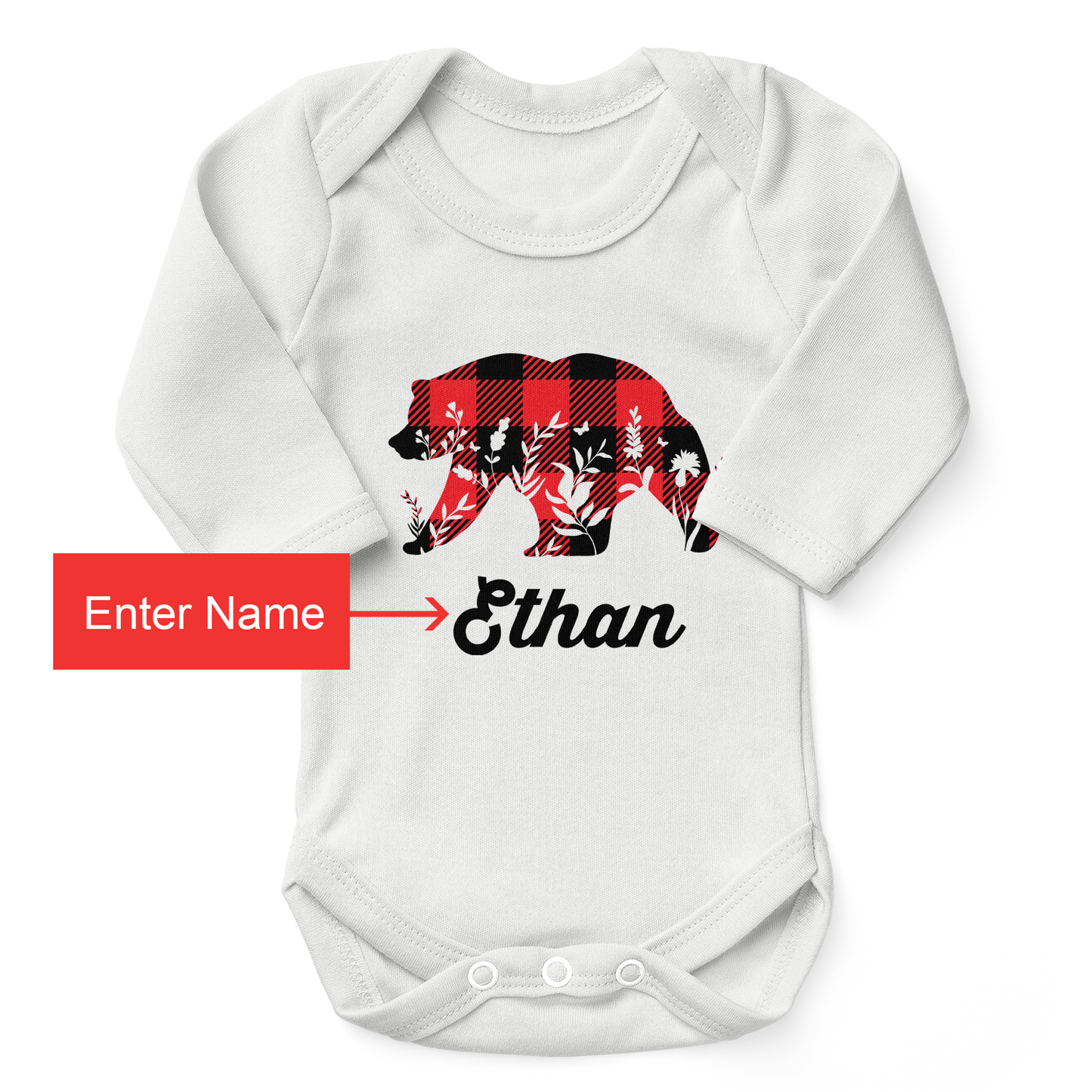 Personalized with Baby's name. This finest Baby Bodysuit is made with soft and premium organic cotton with luxurious feel. Azo-free dyes and eco-friendly water-based inks. - Matching Endanzoo Organic Short Sleeve Tshirt for Mom & Dad - Bear Family