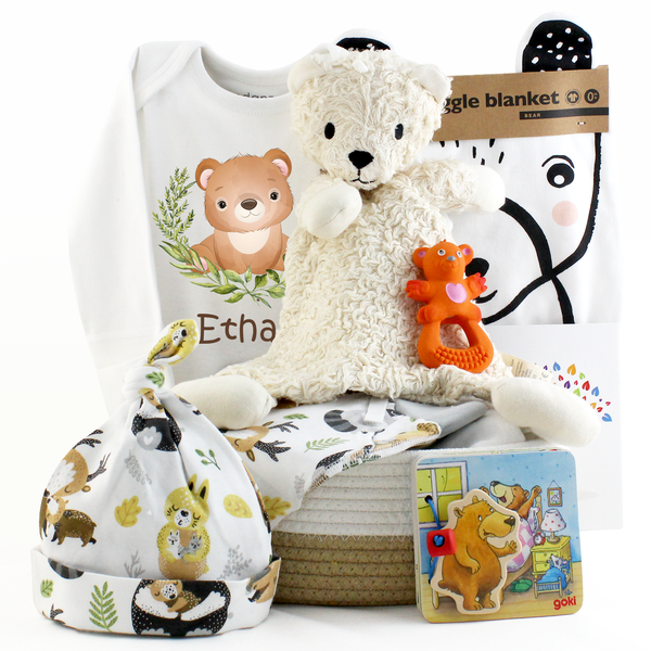 Wrap your little cub in comfort with this nature-inspired gift set featuring soft, organic essentials and matching bear-themed accessories — all beautifully bundled in a reusable cotton rope basket.