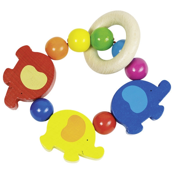 Made with local wood in Germany using non-toxic water-based paints and dyes. This rattle trigger the grip reflex and promote the development process. - Under The Nile Organic Scrappy Elephant