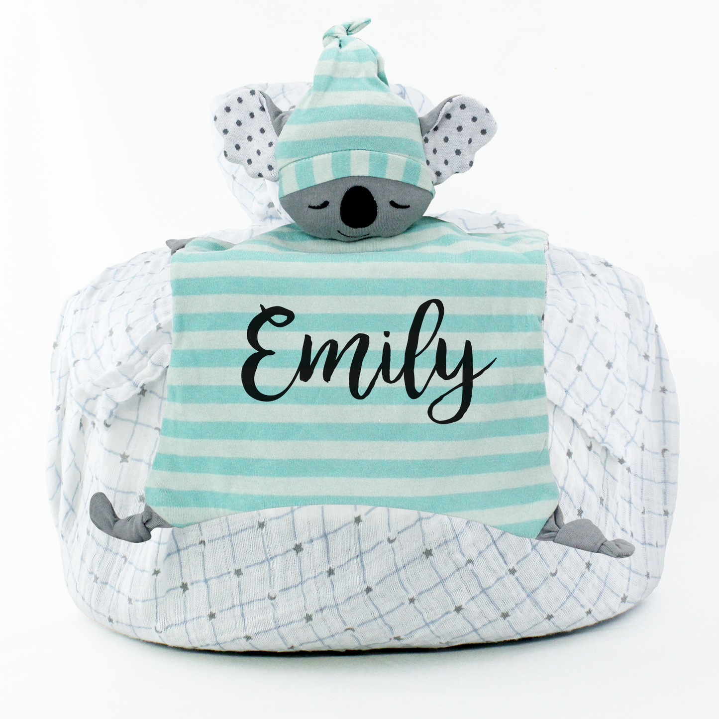 Personalized with Baby's Name. This finest Baby Bodysuit is made with soft and premium organic cotton with luxurious feel. Azo-free dyes and eco-friendly water-based inks. - Personalized Organic Farm Buddies Cotton Baby Blankie - Kozy Koala