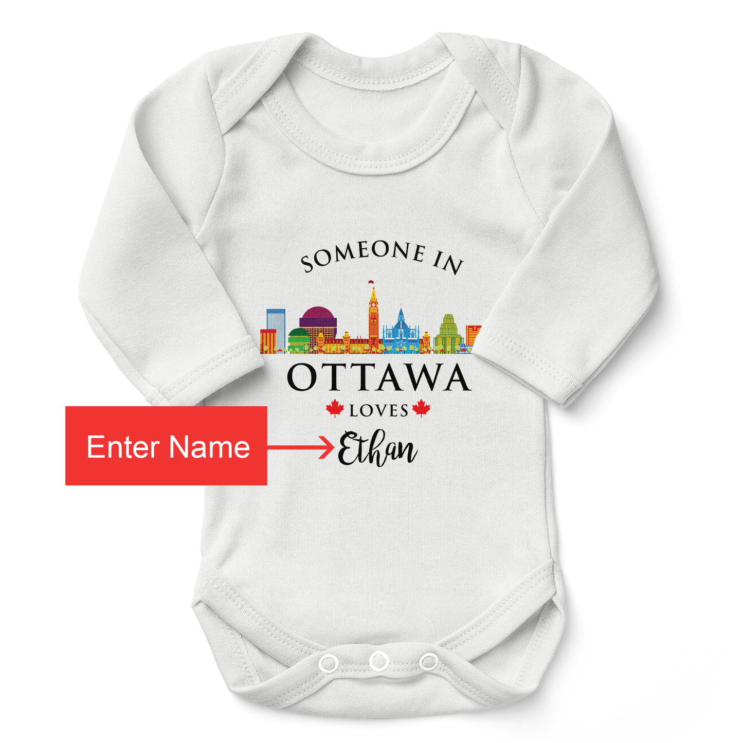 Made of Cotton. The arts on the cloth are designed by local artists. This reusable cloth wrapping will eliminate the waste of gift wrappings. - Personalized Endanzoo Organic Long Sleeve Bodysuits - Someone in Ottawa Loves You
