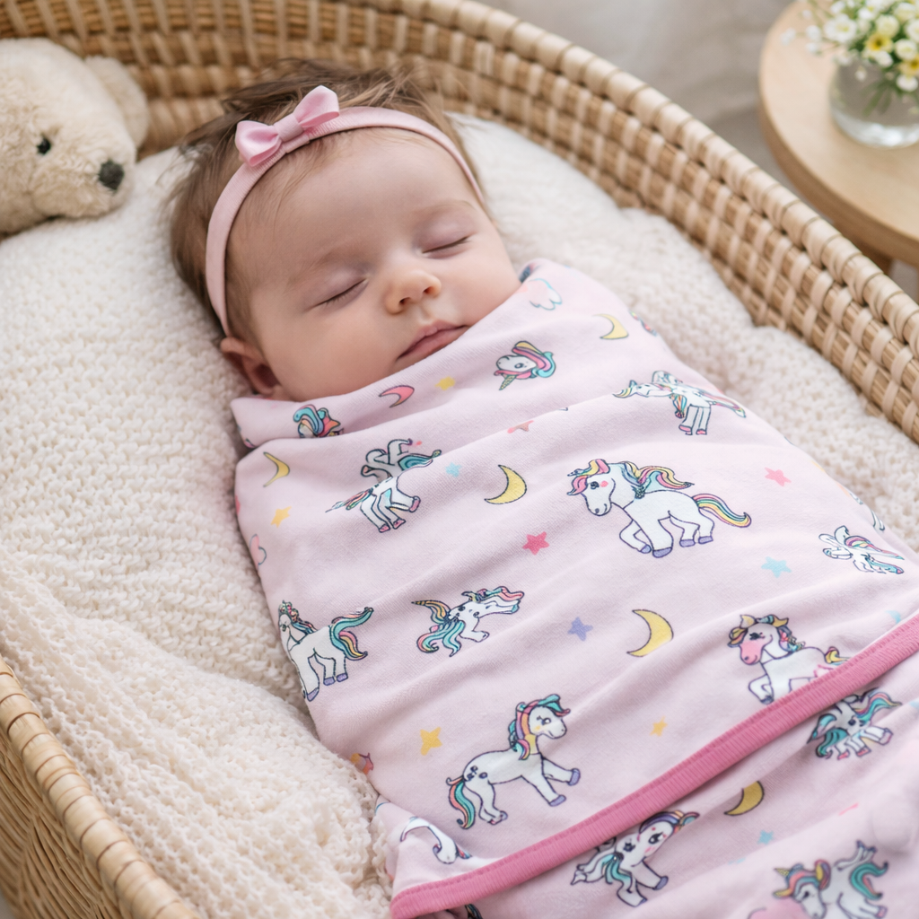 For the baby girl who was born to believe in magic — this unicorn-themed basket features ultra-soft organic pieces, pastel unicorn prints, and zero-waste packaging that turns every gift into a story.