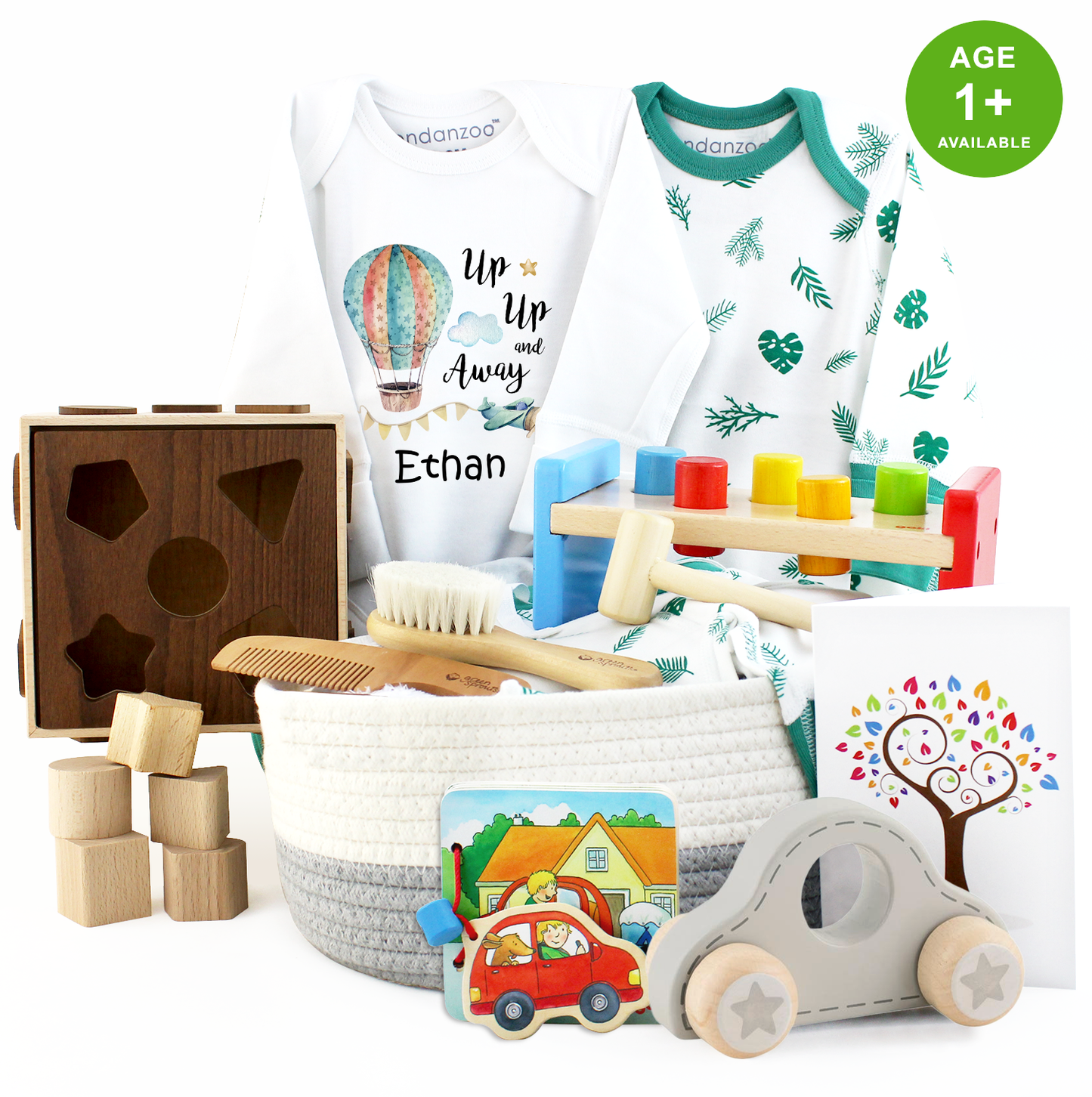 Bring joy, play, and planet-loving charm into baby’s world! Packed with wooden treasures and ultra-soft organic outfits, this basket turns everyday moments into eco-friendly adventures. Thoughtful, timeless, and totally gift-ready!