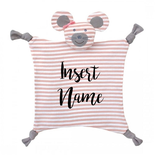 Baby's First Doll, a super soft organic cotton doll for infants, loves to cuddle, has sensory features that entertain and promotes social emotional development. It squeaks with a light squeeze and gently rattles with a little shake. The filler is 100% naturally hypoallergenic corn fiber. - Personalized Organic Farm Buddies Cotton Baby Blankie - Ballerina Mouse