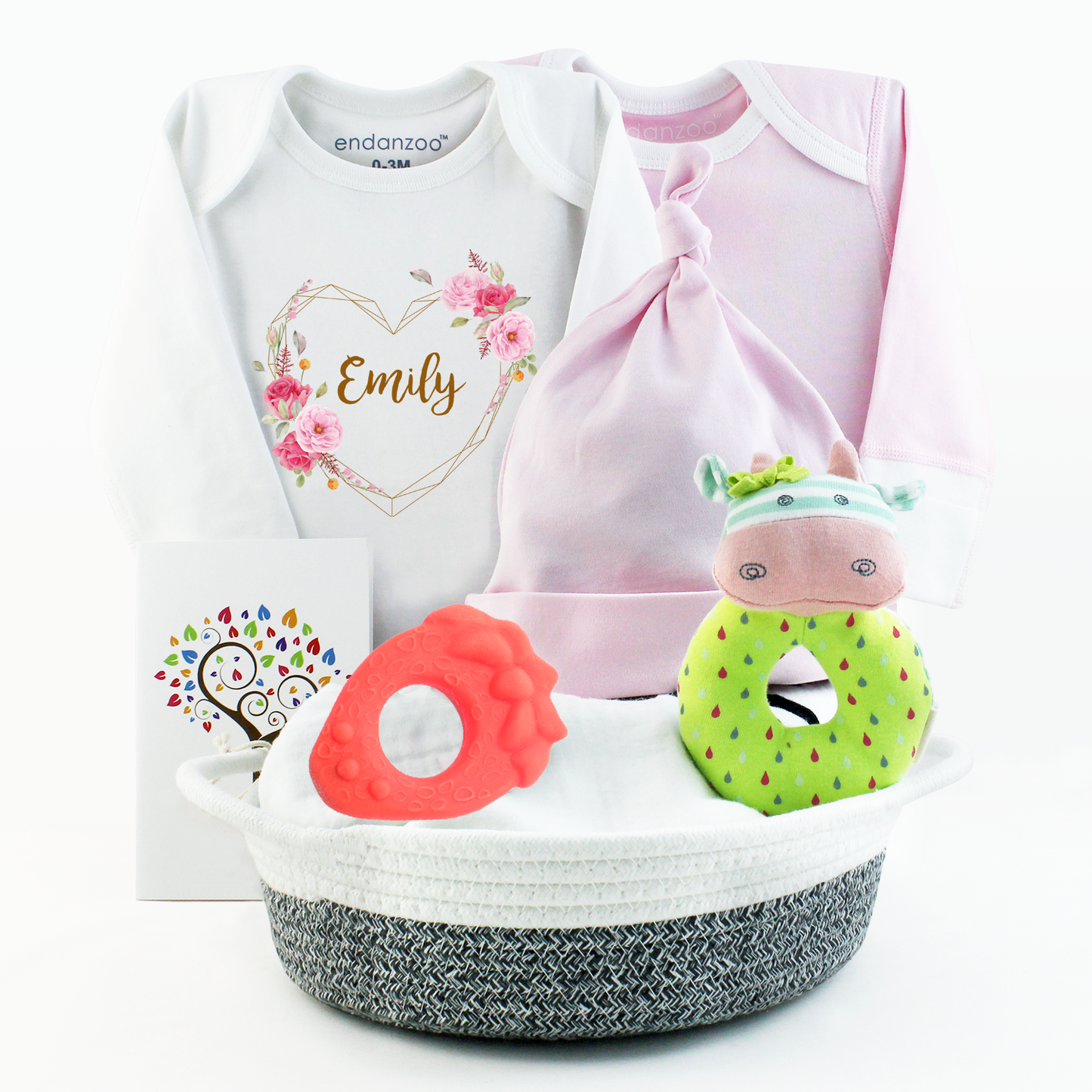 Say hello to the sweetest little arrival with this charming, eco-conscious gift set! Packed with organic baby essentials, a personalized bodysuit, and adorable toys—all wrapped in zero-waste magic. Pretty in pink and ready to delight!