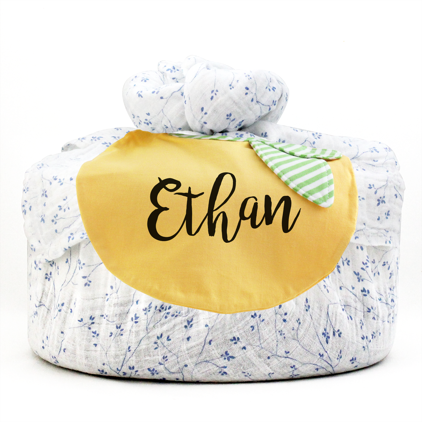 This basket is wrapped with 47" x 47" silky soft muslin swaddle blanket made from bamboo, making it the most luxurious fabric to use on your baby's delicate skin. - Personalized Endanzoo Organic Bodysuit - White