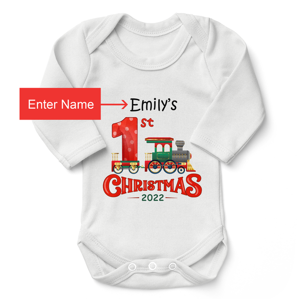 Made with Cotton. The arts on the cloth are designed by local artists. This reusable cloth wrapping will eliminate the waste of gift wrappings. - Personalized Endanzoo Organic Bodysuit - My Frist Christmas